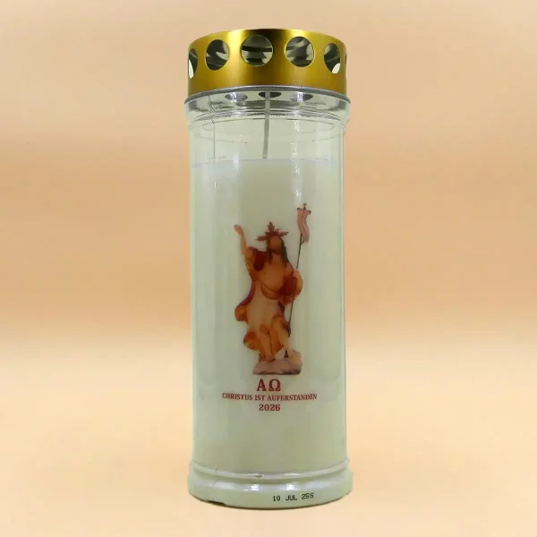 Artikelnummer: 0001 1112 50126 Schlagwörter: Wochenbrenner, Ostern, Auferstandener Jesus, Grablicht, 2026- Beschreibung